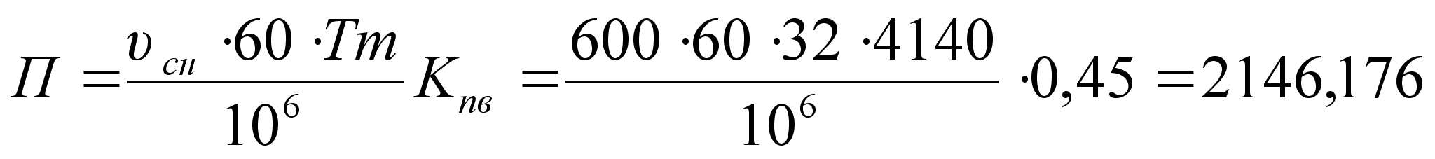 Расчёт частоты вращения (об/мин) и линейной скорости (м/мин) выпускного вала: