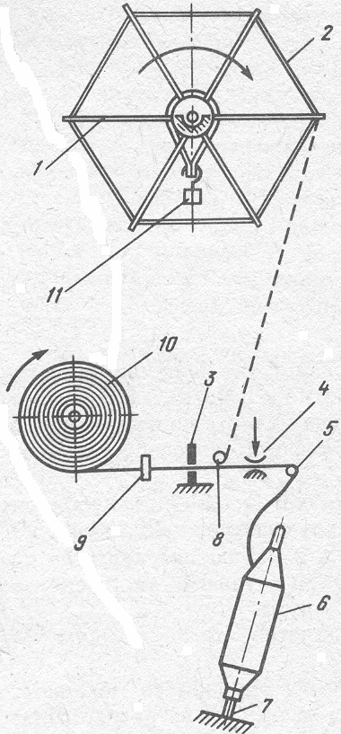 глазок водка нитераскладчика 5 и наматывается на вращающуюся шпулю 4.