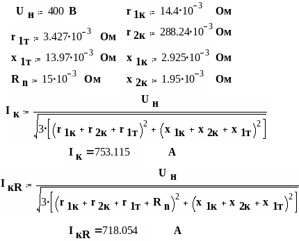 6.3. Переходное сопротивление, включающее сопротивления контактов и сопротивление дуги в месте короткого замыкания при расчётах вблизи шин ЦТП минимально и составляет 15 мОм. В случае расчётов токов короткого замыкания непосредственно на зажимах потребителей, получающих питание от вторичных РП и увеличении удалённости от шин 0,4 кВ ЦПТ это сопротивление увеличивают до 30 мОм (в пределе).![]()