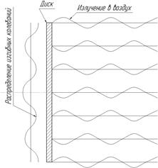 За счет выполнения на тыльной поверхности диска выступов, расположенных в зонах «отрицательной» фазы колебаний, амплитуда колебаний этих зон существенно уменьшена. Поэтому на долю зон «положительной» фазы колебаний приходится 70% общей мощности излучения, в то время как на долю зон «отрицательной» фазы колебаний приходится всего 30% общей мощности излучения.