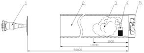 1 – дисковый излучатель; 2 – короб; 3 – аэрозоль; 4 – источник аэрозоля; 5 – вентилятор